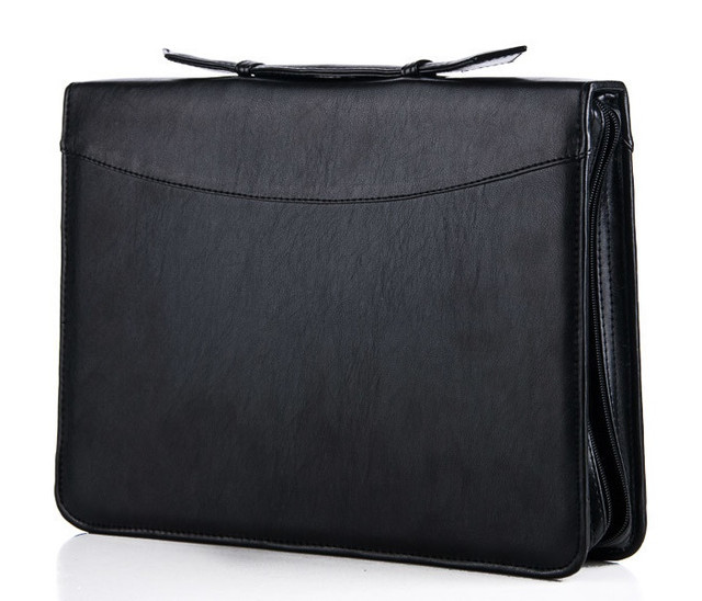Папка класична ділова зі шкірозамінника. Папку можна носити не тільки в руках, а і як портфель, за ручку, розташовану на торці виробу. Папка закривається на блискавку.